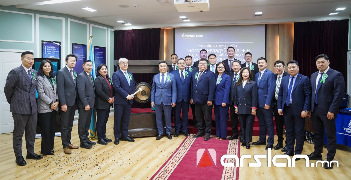 Төрийн банк нь Ногоон эдийн засаг, ногоон шилжилтийн реформыг хэрэгжүүлэх ажлын хүрээнд биржийн бус зах зээлд анх удаагаа "Ногоон ирээдүй" бонд гаргаж, өнөөдөр цан цохих ёслолын арга хэмжээ боллоо.