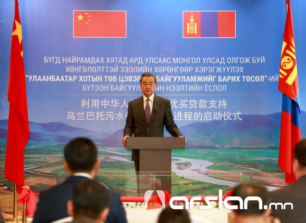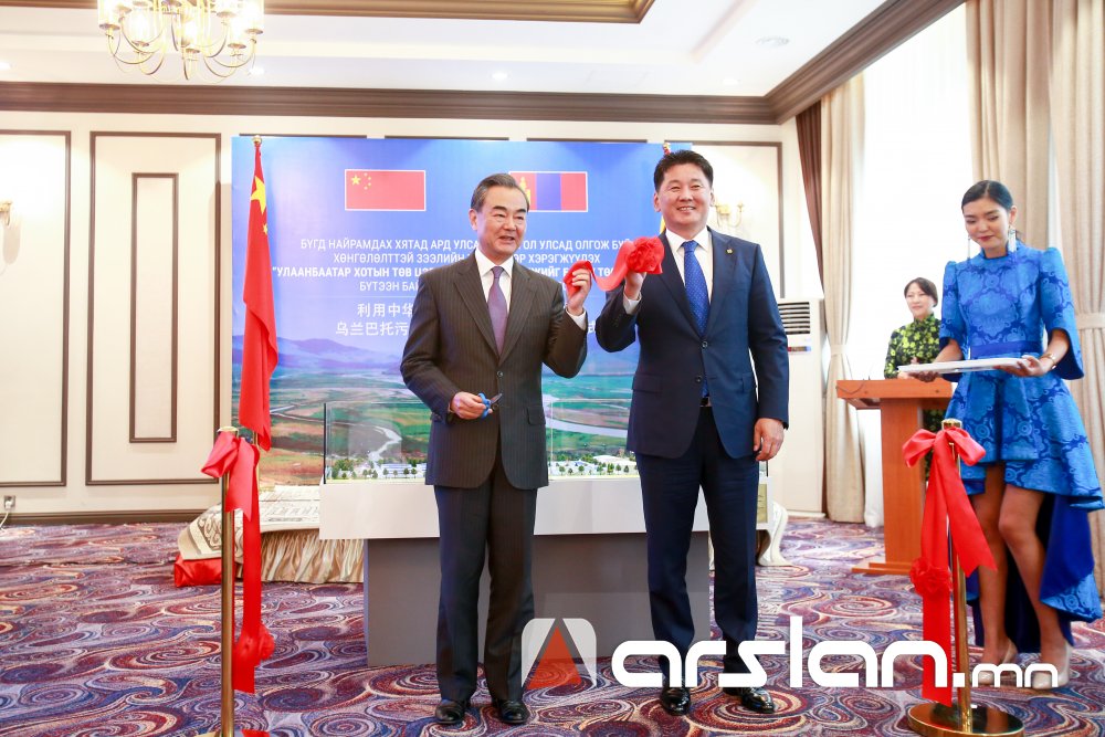 Уулзалтын дараа Монгол Улсын Ерөнхий сайд У.Хүрэлсүх, БНХАУ-ын Төрийн зөвлөлийн гишүүн, Гадаад хэргийн сайд Ван И нар Бүгд Найрамдах Хятад ард улсаас Монгол улсад олгож буй хөнгөлөлттэй зээлийн хөрөнгөөр хэрэгжүүлэх “Улаанбаатар хотын төв цэвэрлэх байгууламжийг барих төсөл”-ийн нээлтийн ёслолын ажиллагаанд оролцож, тууз хайчиллаа.