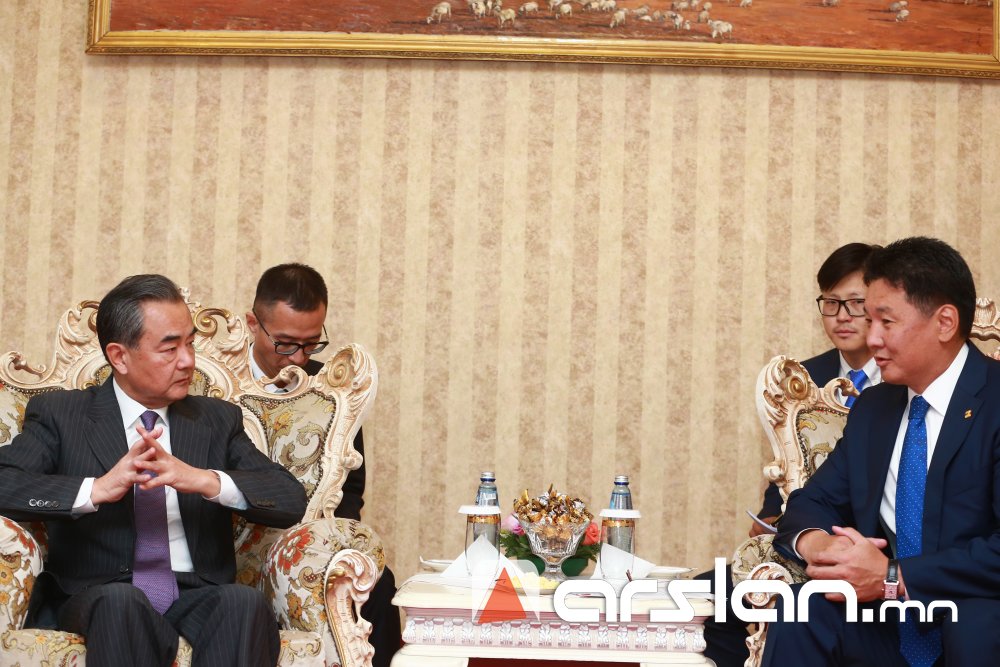 Монгол Улсын Ерөнхий сайд У.Хүрэлсүх БНХАУ-ын Төрийн зөвлөлийн гишүүн, Гадаад хэргийн сайд Ван Иг Их тэнгэр дэхь төрийн ёслоын цогцолборт хүлээн авч уулзлаа. Монгол Улсын Засгийн газрын гишүүн Гадаад харилцааны сайдын урилгаар манай оронд айлчилж буйд Ерөнхий сайд У.Хүрэлсүх ноён Ван Ид талархал илэрхийлээд манай хоёр орны найрсаг харилцаа, хамтын ажиллагаа иж бүрэн түншлэлийн хүрээнд төрийн өндөр дээд хэмжээний айлчлалын давтамж тогтмолжиж байгаад сэтгэл хангалуун байна гэв.