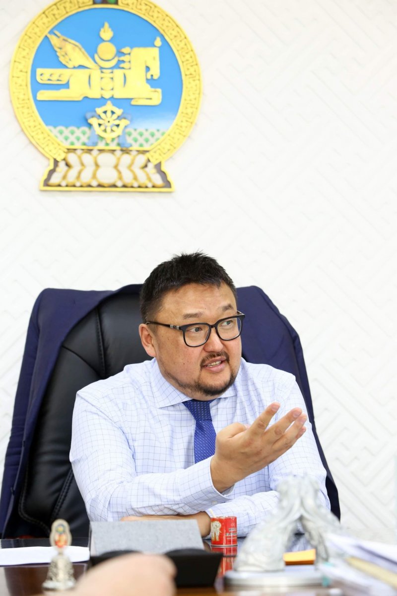 -Таны ярьж буйтай санал нэг байна. Сүүлийн 30-аад жил Монгол Улс сонгуулиас сонгуулийн хооронд яваад ирсэн юм болов уу гэж харагддаг тал бий. Өнгөрсөн онд сайд, ЗГХЭГ-ын дарга Л.Оюун-Эрдэнээр ахлуулсан Монгол Улсын хөгжүүлэх "Алсын хараа-2050" бодлогын баримт бичиг боловсруулж баталсан. Энэ нь Монгол Улс хөгжлийн ямар алсын хараатай байх вэ гэдгээ тодорхойлсон бодлогын сайн баримт бичиг болсон гэж боддог. Салбарт ирээд анзаарсан зүйл бол салбарын дунд ба урт хугацааны хөгжлийн бодлогын тодорхой баримт бичиг байгаагүй. Тийм учраас салбарын дунд хугацааны бодлого боловсруулахаас ажлаа эхэлсэн. Цаашдаа салбараа хааш нь хөгжүүлэх вэ гэдгийг гаргаж ирсэн. Уул уурхай дээр тулгуурласан эдийн засагтай манай улсын солонгоруулах буюу олон тулгуурт эдийн засгийн гол баганын нэг нь