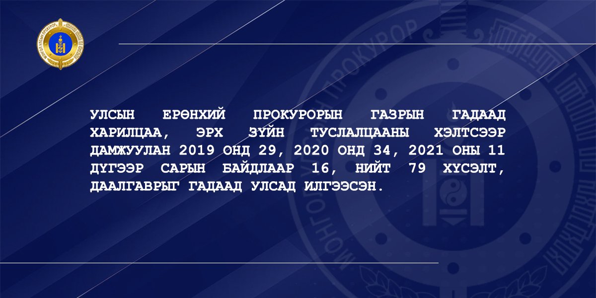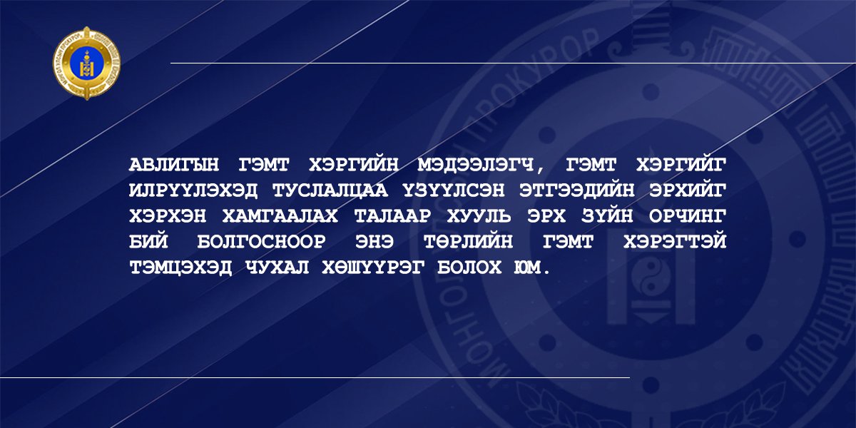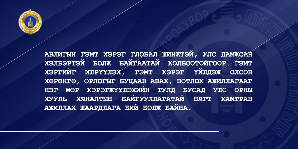 Энэхүү арга хэмжээнд Улсын ерөнхий прокурорын орлогч, төрийн хууль цаазын шадар зөвлөх М.Чинбат “Авлигын гэмт хэргийг шалгах ажиллагаанд тавих прокурорын хяналт, тулгамдсан асуудал” сэдвээр илтгэл тавьлаа.