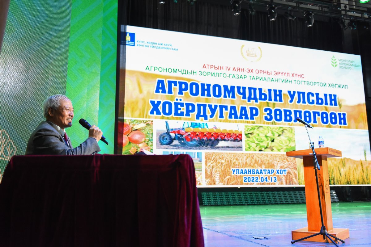 Монгол Улсын Ерөнхийлөгчийн ивээл дор зохион байгуулж буй "Хүнсний хангамж, аюулгүй байдал, газар тариалан" үндэсний чуулган өнөөдөр (2022.04.13) “Атрын IV аян Эх орны эрүүл хүнс уриатайгаар- Агрономчдын улсын зөвлөгөөн“-өөр үргэлжилж байна.