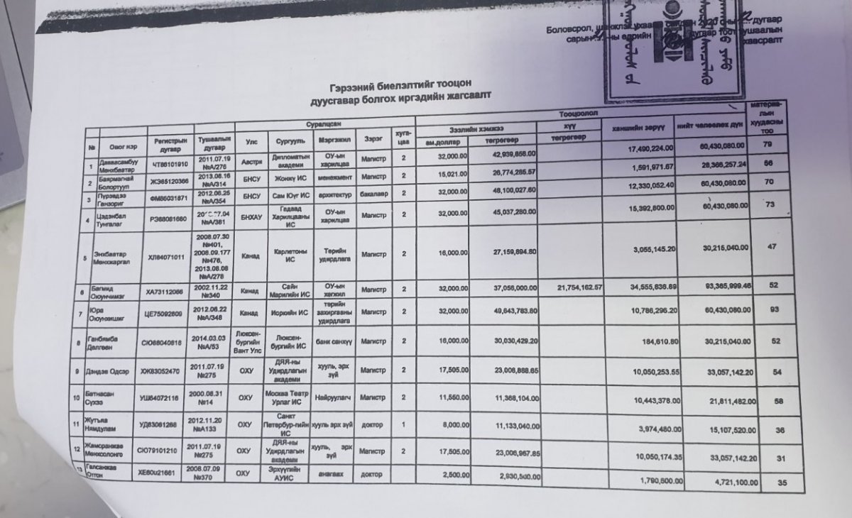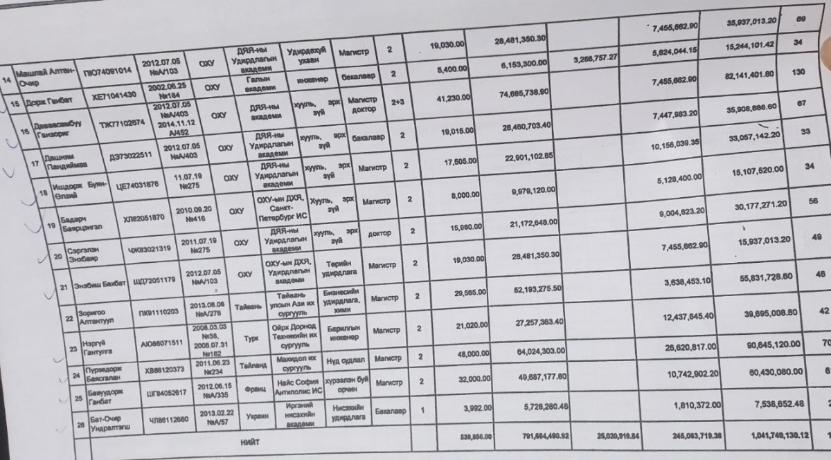 Хамгийн ноцтой нь, зэлээ тэглүүлсэн 26 хүний 11 нь хуулийн байгууллагын албан тушаалтнууд, харин 7 нь захиалгаар сургахаа больсон, нэг нь тушаал өөрчлүүлэн хоёр дах удаагаа сурсан байжээ.