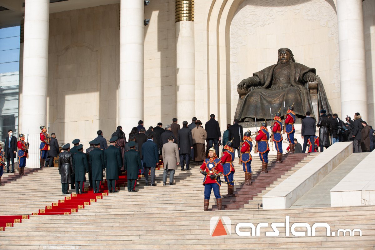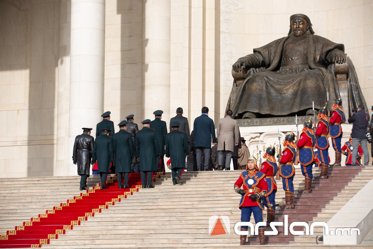 Харин морин цаг буюу 11.40 цагт Монгол Улсын Ерөнхий сайд Л.Оюун-Эрдэнэ, УИХ-ын дарга Г.Занданшатар, УИХ, Засгийн газрын гишүүд, Нийслэлийн удирдлагууд болон Чингис хаан одонт эрхмүүд өнөөдөр Их эзэн богд Чингис хааны хөшөөнд мэхийн хүндэтгэл илэрхийллээ.