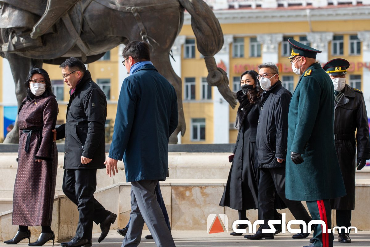 ФОТО: Ерөнхий сайд, УИХ-ын дарга нар Чингис хааны хөшөөнд хүндэтгэл үзүүллээ