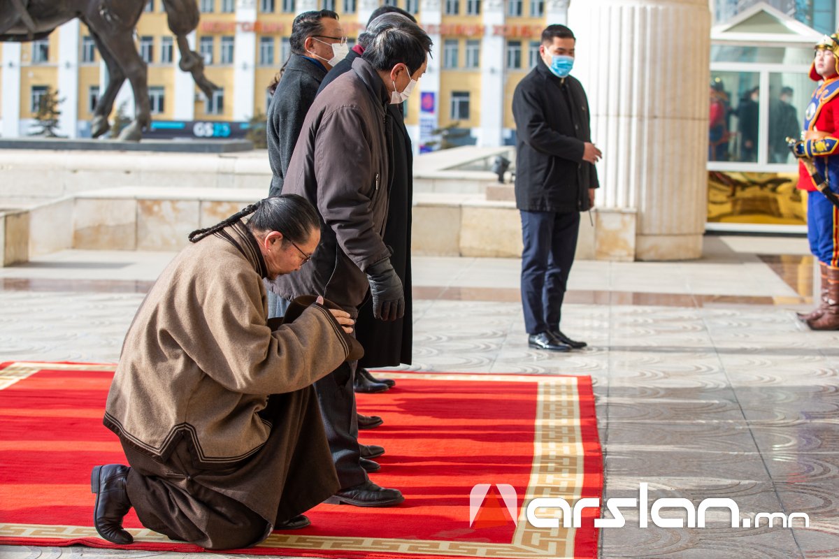 Жил бүрийн Их эзэн Чингис хаан мэндэлсний ой, Монгол бахархлын өдөр буюу билгийн тооллын өвлийн тэргүүн сарын шинийн нэгэнд "Чингис хаан" одон хүртсэн эрхмүүд Төр, засгийн удирдлагын хамтаар хааны хөшөөнд хүндэтгэл илэрхийлдэг уламжлалтай. Монгол Улсын Ерөнхийлөгчийн хувьд, ИБУИНХУ-ын Глазгоу хотноо Уур амьсгалын өөрчлөлтийн асуудлаарх дэлхийн удирдагчдын дээд түвшний уулзалтад оролцож байгаа бөгөөд маргааш эх орондоо залрах юм.