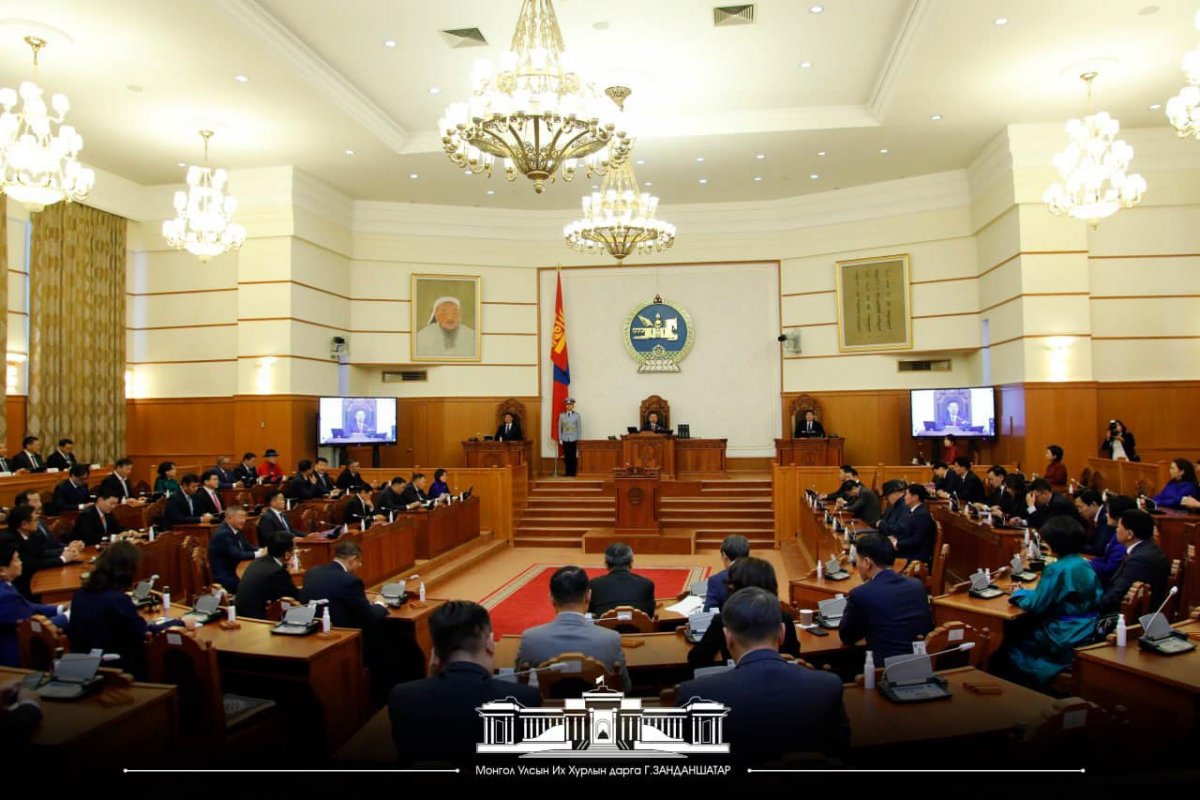 Хуралдаанд Монгол Улсын Ерөнхийлөгч У.Хүрэлсүх, Ерөнхий сайд Л.Оюун-Эрдэнэ нар оролцож байна.