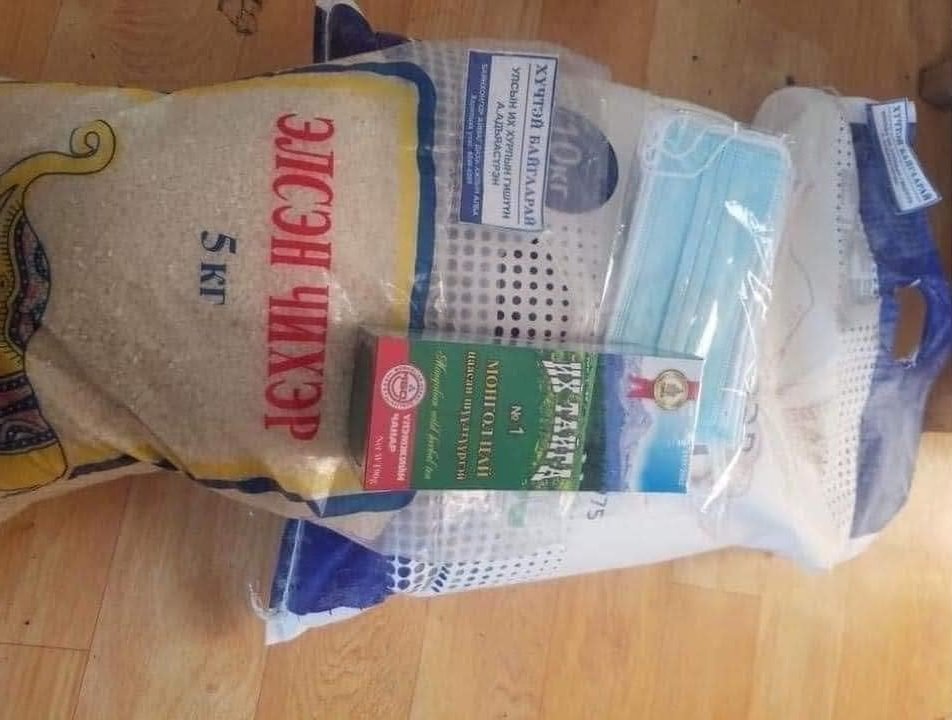 Тэдний нэг УИХ-ын гишүүн А.Адьяасүрэн “ХҮЧТЭЙ БАЙГААРАЙ” гэж уриалан будаа, гурил тараав.