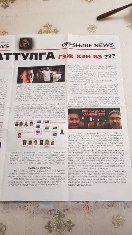 Тодруулбал, нэр дэвшигч Х.Баттулгыг түүхэн дэх хамгийн "хар" ерөнхийлөгч хэмээн тодорхойлж, сэтгүүлч Л.Болормаа агсан болон Зам тээврийн яамны газрын даргаар ажиллаж байсан Т.Гомбосүрэн агсны үхэл зэрэг хэд хэдэн хүн амины хэргүүдэд холбоотой хэмээх мэдээлэл бүхий “Offshore news” нэртэй сониныг иргэдэд тараажээ.
