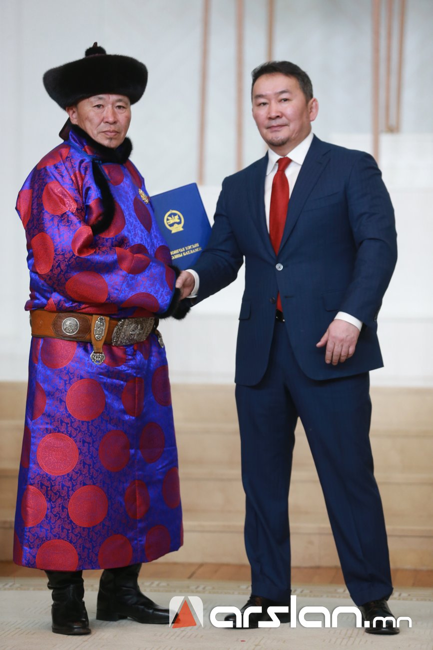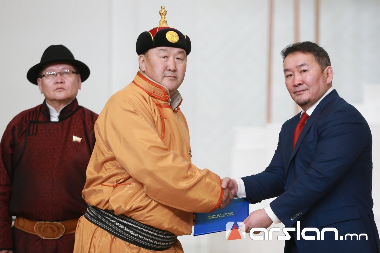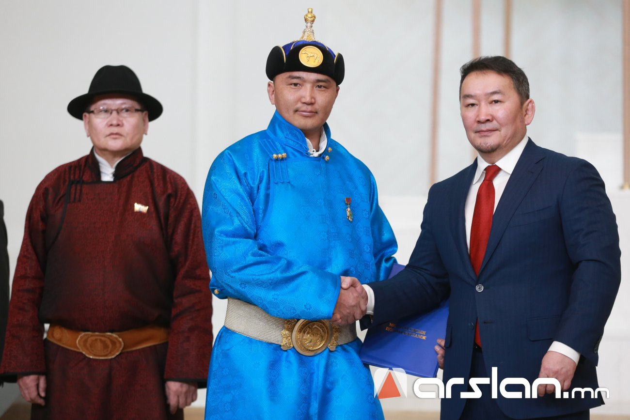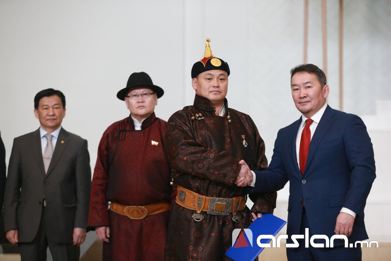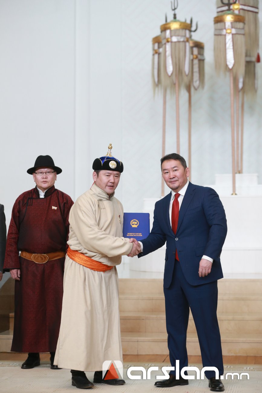 Уяачдын цолыг өнөөдөр Төрийн есөн хөлт цагаан тугт танхимд Монгол Улсын Ерөнхийлөгч Х.Баттулга гардуулж өгөв.