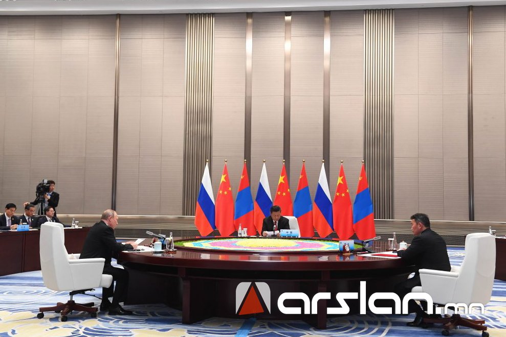 Хөрш гурван улсын хамтын ажиллагааг бодит хэрэгжилтэд аваачих боломж бидний өмнө нээлттэй байна. Монголын ард түмэн олон жил яриа хэлцлийн түвшинд өрнөсөн гурван улсын хамтын ажиллагаанаас бодит үр дүн, хэрэгжилтийг хүлээж байгаа. Тийм учраас бодит хэрэгжилтийн төлөө миний бие эрхэм Ши Жиньпин дарга, эрхэм В.В.Путин Ерөнхийлөгч нартай ойр дотно, идэвхтэй хамтран ажиллах эрмэлзэл дүүрэн байна.
