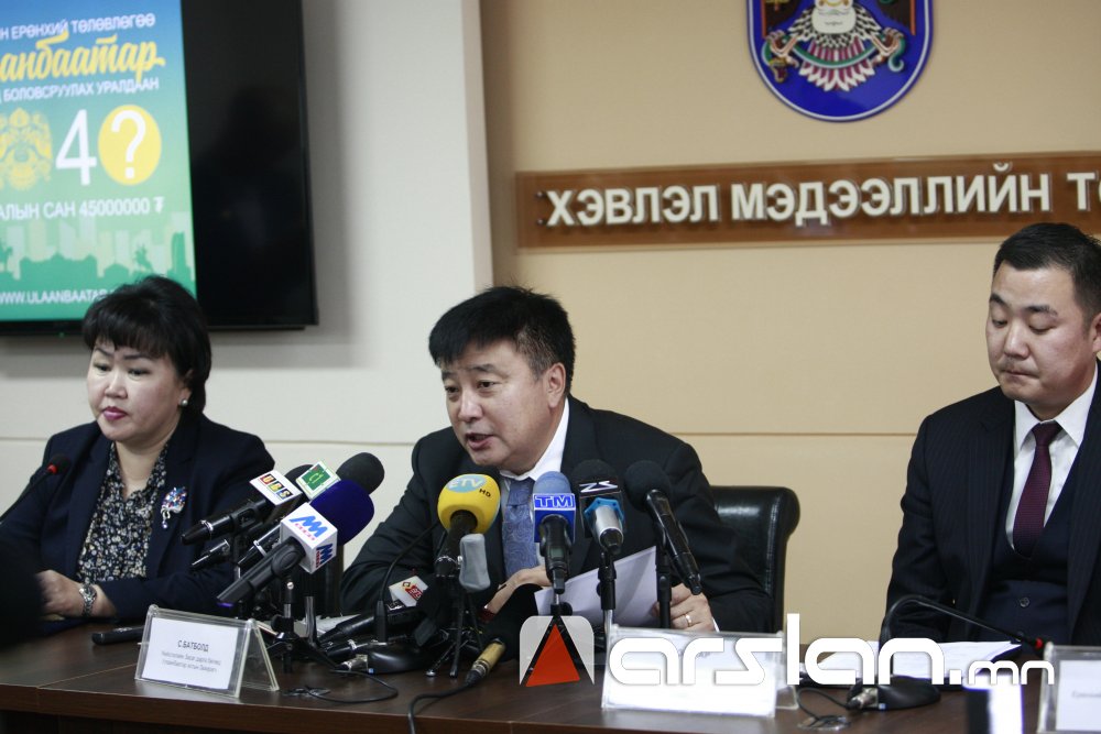 Нийслэлийн Засаг дарга бөгөөд Улаанбаатар хотын захирагч С.Батболд, нийслэлийн Хот төлөвлөлт, Ерөнхий төлөвлөгөөний газрын дарга Э.Анар нар хэвлэлийн бага хурал хийлээ.