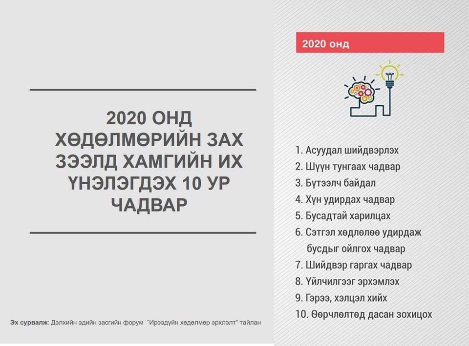 НХЭГ: 2020 онд хөдөлмөрийн зах зээлд хамгийн их үнэлэгдэх 10 УР ЧАДВАР