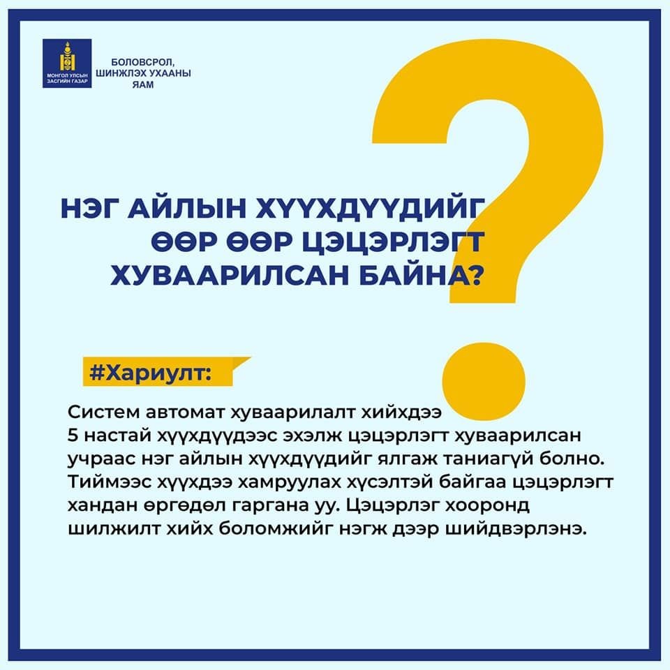 Нэг айлын хүүхдүүдийг өөр, өөр цэцэрлэгт хуваарилсан байна...