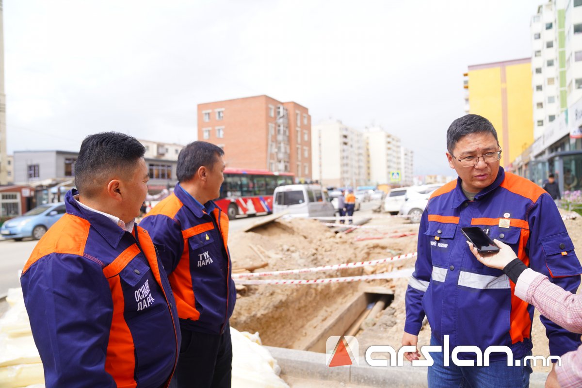 Дулааны шугам сүлжээг солих, засах ажлууд эдгээр өдрүүдэд эрчимтэй өрнөж байна. Тэгвэл энэ хүрээнд Орон сууц нийтийн аж ахуйн удирдах газрын дарга Ч.Мэндбаяр, ерөнхий инженер Ж.Пүрэвжамц нар өчигдөр буюу 08 дугаар сарын 22-ны өдөр Хан-Уул дүүргийн Нисэх, Баянгол дүүргийн 3,4-р хороолол, бичилийн зам дагуу хийгдэж буй инженерийн шугам сүлжээний засварын ажлын явцтай танилцлаа.