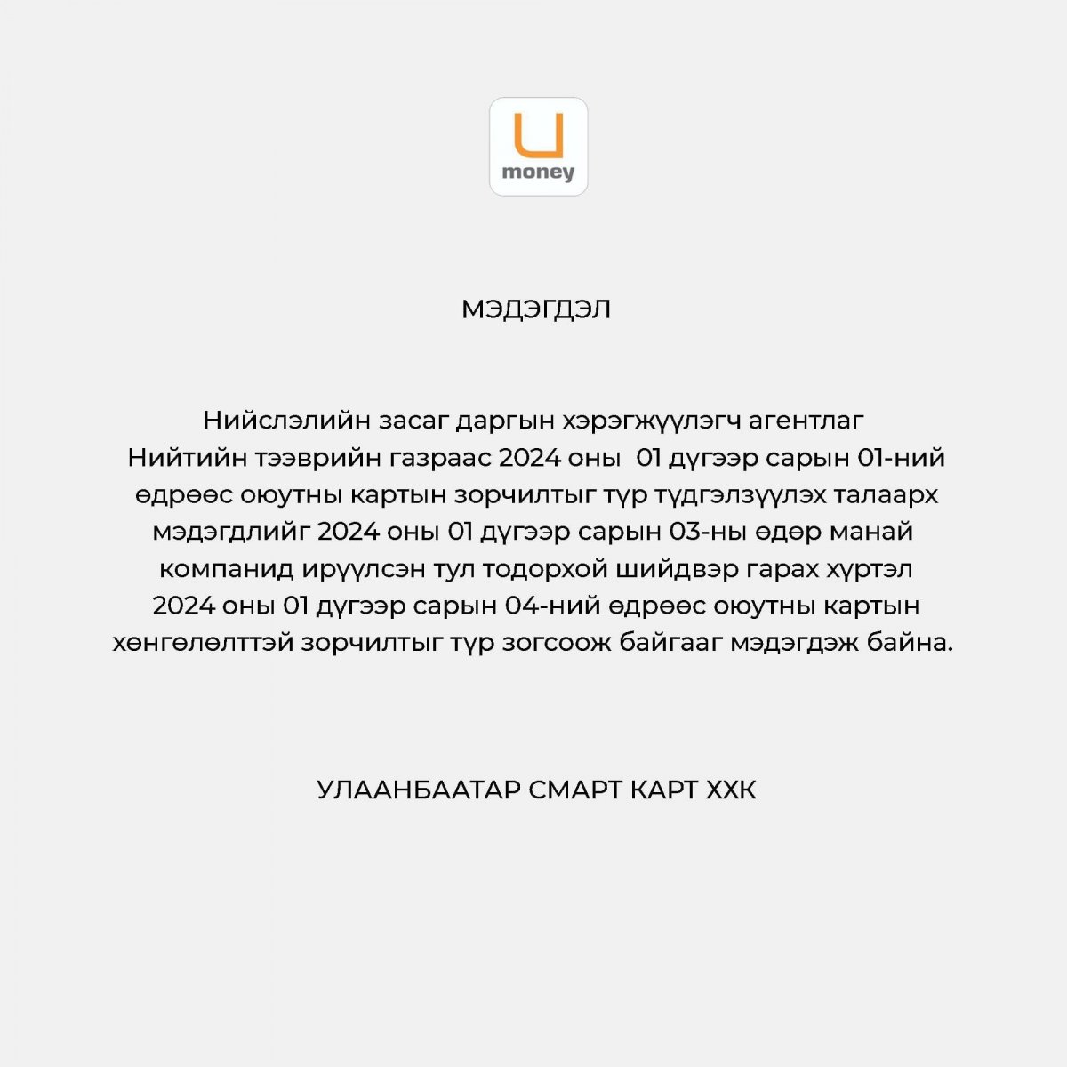 "Улаанбаатар смарт карт" ХХК-аас мэдэгдэл гаргажээ.