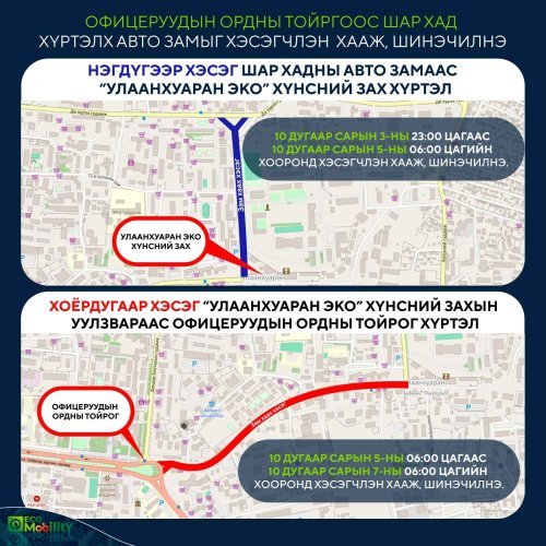 Офицеруудын тойргоос Шархад хүртэлх авто замыг аравдугаар сарын 3-ны өдрийн 23:00 цагаас эхлэн хааж шинэчлэхээр болсон байна. Ингэхдээ тус чиглэлийг хоёр хэсэгт хуваан шинэчлэхээр болжээ.