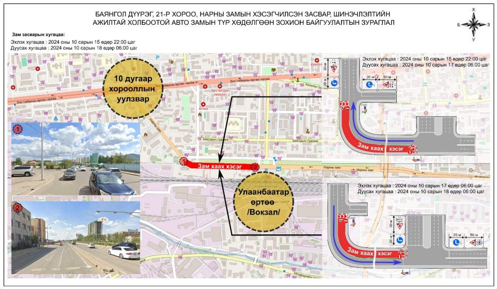Харин хойд эгнээг аравдугаар сарын 17-ны 06:00 цагаас 18-ны 06:00 цагийн хооронд хэсэгчлэн хааж, засварлана. Иймд иргэд, жолооч нарыг бусад замыг сонгон хөдөлгөөнд оролцохыг уриаллаа.