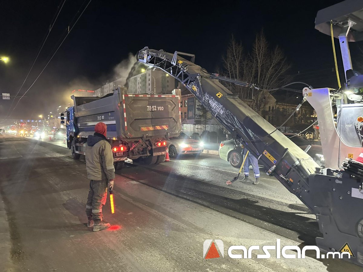 Энхтайваны өргөн чөлөөний авто замын засварын ажил үргэлжилж байна. Энэ хүрээнд 25 дугаар эмийн сангийн уулзвараас Амарсанаагийн гудамжны уулзвар хүртэлх зорчих хэсгийн урд талын замын 1, 2 дугаар эгнээг 4.8 метрийн өргөнтэй зорж, рейсаклерын техник хэрэгсэл ашиглан 0.25 метрийн зузаантайгаар 6 хувийн цементээр бэхжүүлэн суурь хучилт хийж байна.