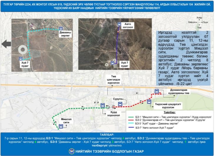 Наадмын өдрүүдэд Төв цэнгэлдэх хүрээлэн болон Хүй долоо худаг руу нийтийн тээврийн автобус явах маршрут