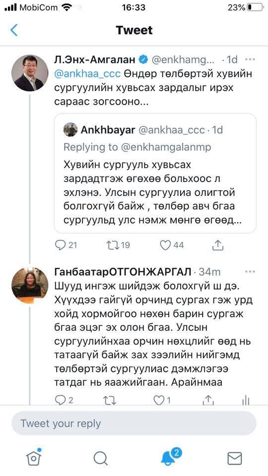 Манай улсын төрийн түшээд, эрх бүхий албан тушаалтнууд сошиал орчны ерөнхий чигийг харан түүнд нийцүүлэн ард иргэддээ таалагдахын тулд ажлаа явуулдаг болсон нь нууц биш. Гэвч энэ үзэгдэл нь аливаа зүйлийн агуулгыг анхаарах бус хэлбэр хөөдөг шинжинд оруулаад буйг шүүмжилдэг. Үүний тод шишээ нь БШУ-ны сайд Л.Энх-Амгалан өөрийн твиттер хуудсаар дамжуулан төрийн шийдвэрээ зарлаж "попорсонд" иргэд шүүмжлэлтэй хандаж байна. Тэрээр твиттер хуудаснаа "Өндөр төлбөртэй хувийн сургуулийн хувьсах зардалыг ирэх сараас зогсооно" хэмээн мэдэгджээ. Энэ шийдвэр зөв, буруу байхаас үл хамааран ямар үндэслэл, судалгаа, нөхцөл байдлыг харгалзан гаргаснаа тайлбарлах ёстой.