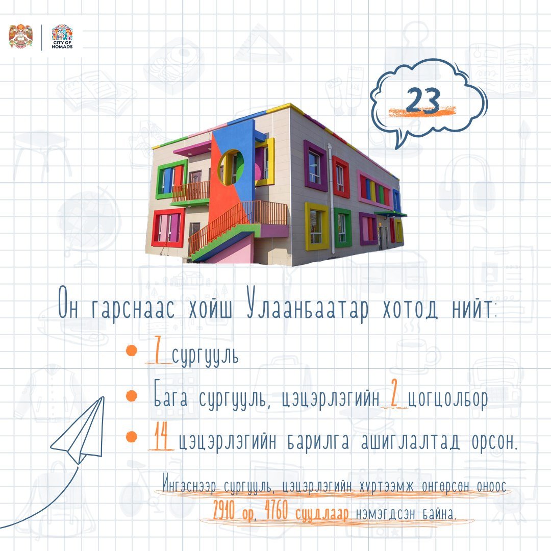 - Ингэснээр сургууль, цэцэрлэгийн хүртээмж өнгөрсөн оноос 2910 ор, 4760 суудлаар нэмэгдсэн байна.