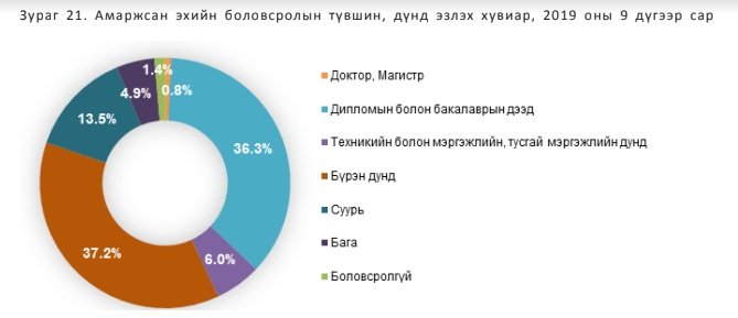 Амаржсан эхчүүдийн 1.4 хувь нь боловсролгүй, 4.9 хувь нь бага, 13.5 хувь нь суурь, 37.2 хувь нь бүрэн дунд, 6.0 хувь нь техникийн болон тусгай мэргэжлийн, 36.3 хувь нь дипломын болон бакалаврын, 0.8 хувь нь магистр, докторын зэрэгтэй байна. Амаржсан эхчүүдийн 52.7 хувь нь гэрлэлтээ албан ёсоор батлуулсан, 45.9 хувь нь гэрлээгүй (гэрлэлтээ батлуулаагүй), 1.4 хувь нь гэрлэлтээ цуцлуулсан байна.