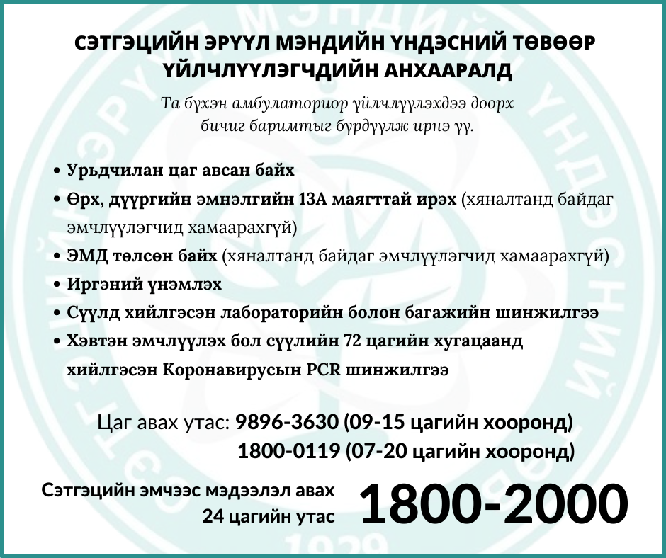 Сэтгэцийн эрүүл мэндийн үндэсний төвөөр үйлчлүүлэгчдийн АНХААРАЛД