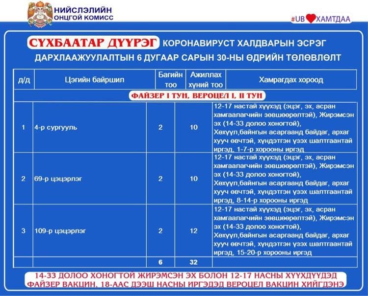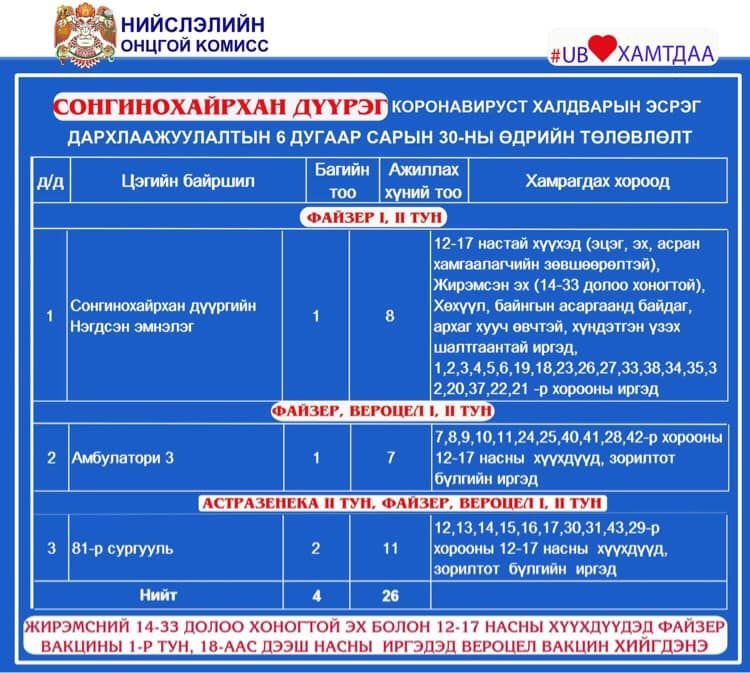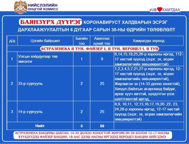 БАЙРШИЛ: Өнөөдөр 23 цэгт 13,040 иргэнийг коронавируст халдварын эсрэг дархлаажуулна