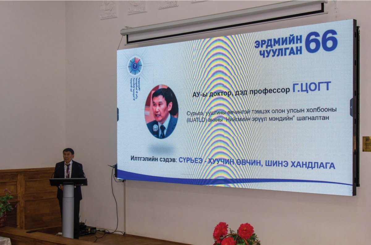 • Сүрьеэ, уушгины өвчинтэй тэмцэх олон улсын холбооны (IUATLD) “Нийгмийн эрүүл мэндийн” шагналтан, Анагаах ухааны доктор, дэд профессор Г.Цогт “Сүрьеэ: Хуучин өвчин - шинэ хандлага” сэдвээр