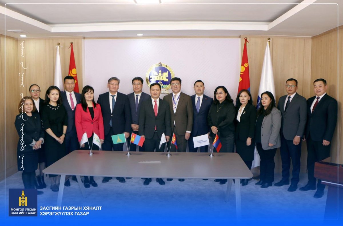 Засгийн газрын Хяналт хэрэгжүүлэх газрын дарга Ч.Өнөрбаяр, Нийгмийн даатгалын ерөнхий газрын дарга Б.Батжаргал, Улсын хоёрдугаар төв эмнэлгийн захирал Б.Бямбадорж, Монголын Бүтээмжийн Төвийн гүйцэтгэх захирал Я.Эрхэмбаяр нар /2025.04.07/ өдөр “Төрийн байгууллагын төгөлдөршил, загвар байгууллагын төсөл” хамтран ажиллах гурван талт гэрээнд гарын үсэг зурлаа.