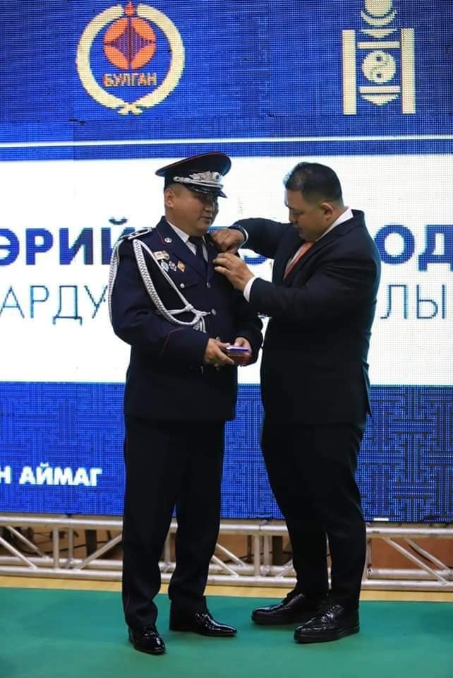 Булган аймагт Цагдаагийн байгууллагын түүхт 100 жилийн ойг тохиолдуулан гэмт хэрэгтэй тэмцэх, нийтийн хэв журам хамгаалах, олон нийтийн аюулгүй байдлыг хангах ажилд идэвх зүтгэл, үр бүтээл гарган ажилласан ажлыг нь үнэлж Монгол Улсын Ерөнхийлөгчийн 2021 оны 05 дугаар сарын 14-ний өдрийн 94 дүгээр зарлигаар Рашаант сум дахь сум дундын Цагдаагийн тасгийн дарга, цагдаагийн дэд хурандаа Ч.Дэлгэрнасан, цагдаагийн бэлтгэл ахмад Ц.Цолмон нарыг “Цэргийн гавьяаны одон”-гоор, Дашинчилэн сумын Хэсгийн төлөөлөгч, цагдаагийн хошууч Э.Энхболд “Алтан гадас одон”-гоор шагнагдсныг Улсын Их Хурлын гишүүн Ж.Бат-эрдэнэ, аймгийн Засаг дарга Б.Ариун-Эрдэнэ нар гардуулан өглөө.