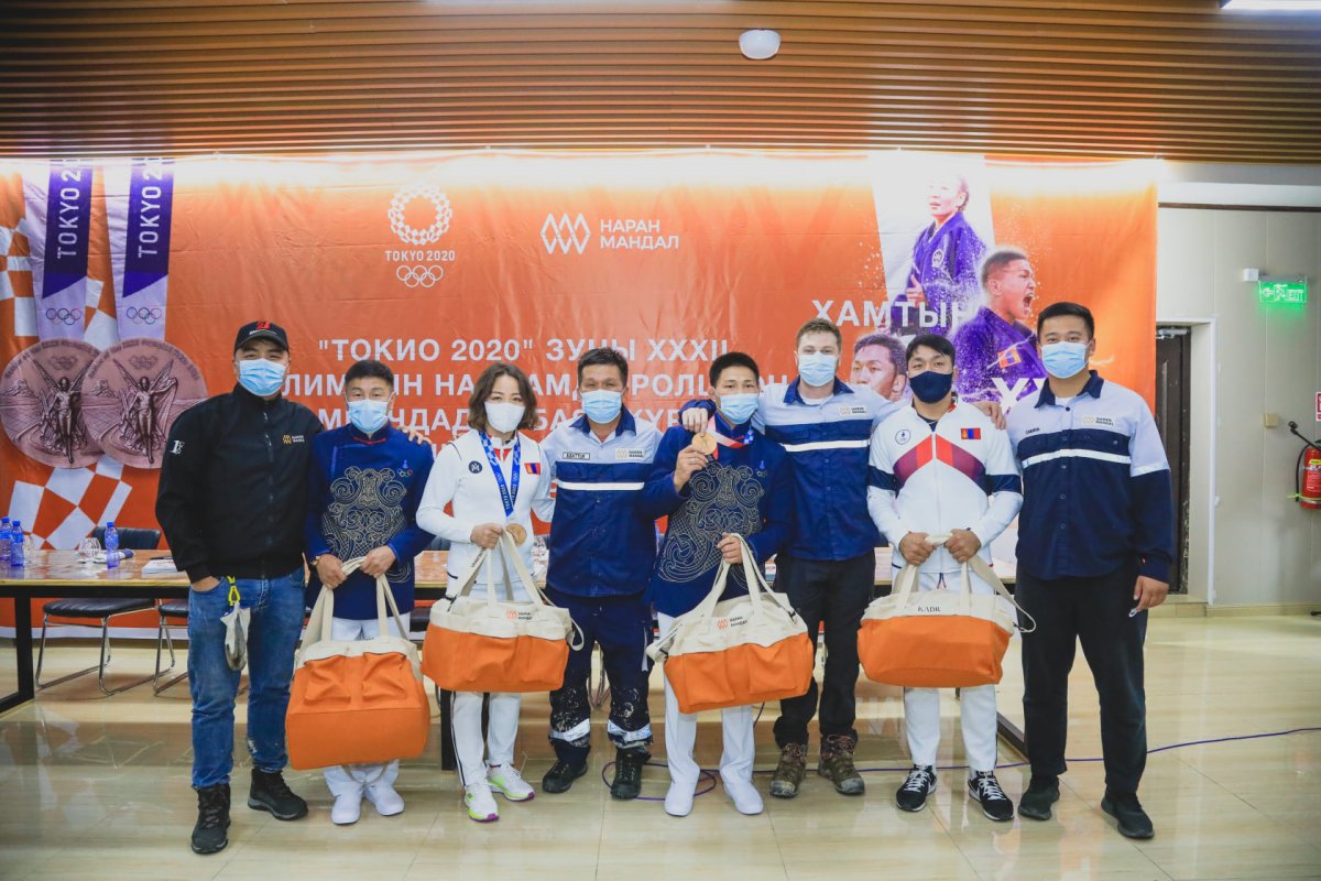 Наран Мандал компанийн тамирчид болох Токио 2020 зуны Олимпын наадамд амжилттай оролцсон МУГТ, Хөдөлмөрийн баатар М. Уранцэцэг болон ОУХМ Ц. Цогтбаатар нарт “Наран Мандал Энтерпрайзес” ХХК-ны зүгээс тус бүр 80 сая төгрөгөөр урамшуулсныг хамт олныхоо хамт гардуулан өглөө.