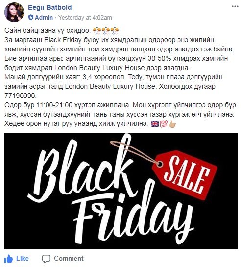 СОНИРХУУЛАХАД: “ВLACK FRIDAY“-Д нэгдэж буй ДЭЛГҮҮРҮҮД