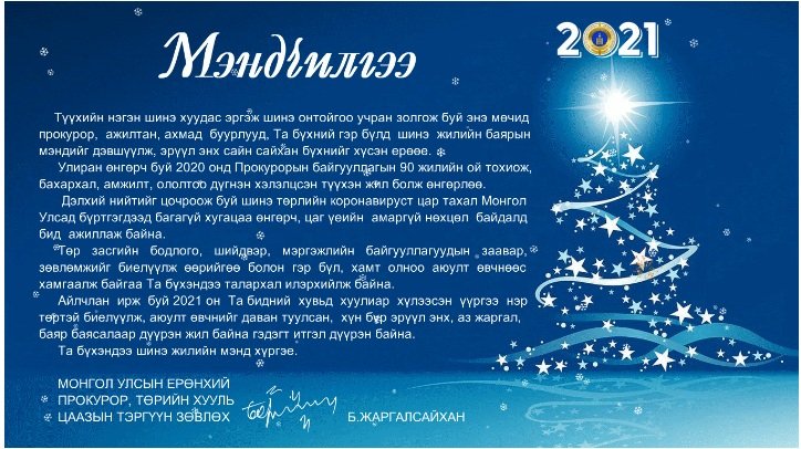 Монгол улсын Ерөнхий прокурор Б.Жаргалсайхан ШИНЭ ОНЫ МЭНДЧИЛГЭЭ дэвшүүллээ