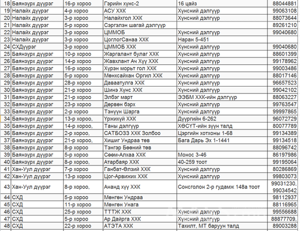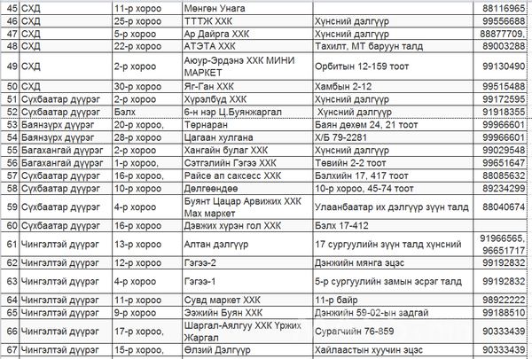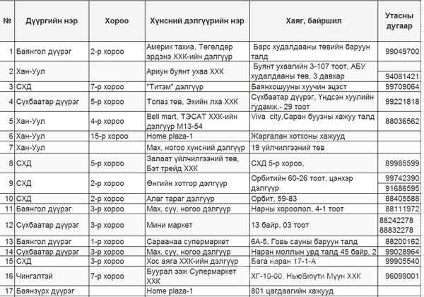 Нөөцийн мах худалдаалж буй хүнсний дэлгүүрийн хаяг, байршил
