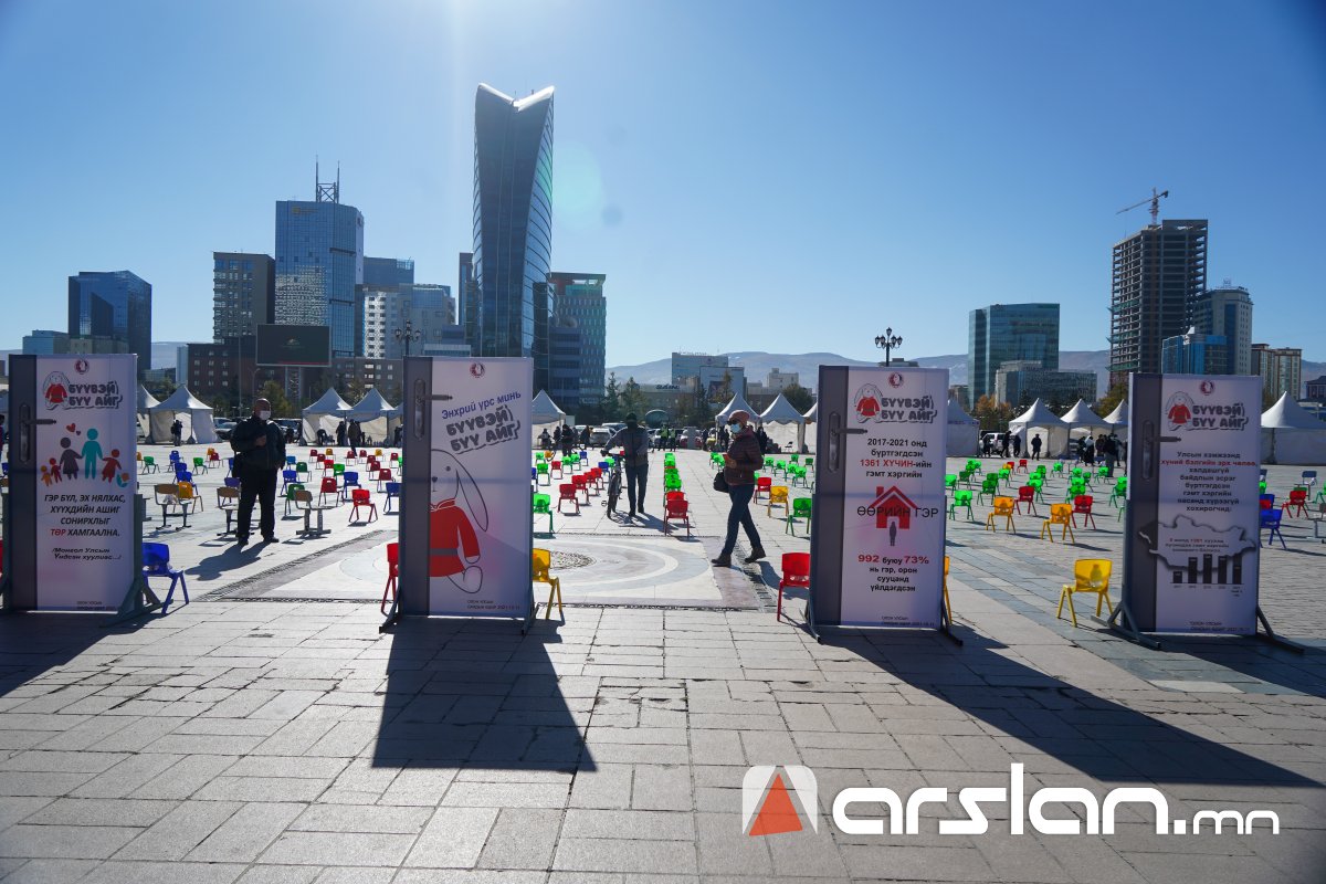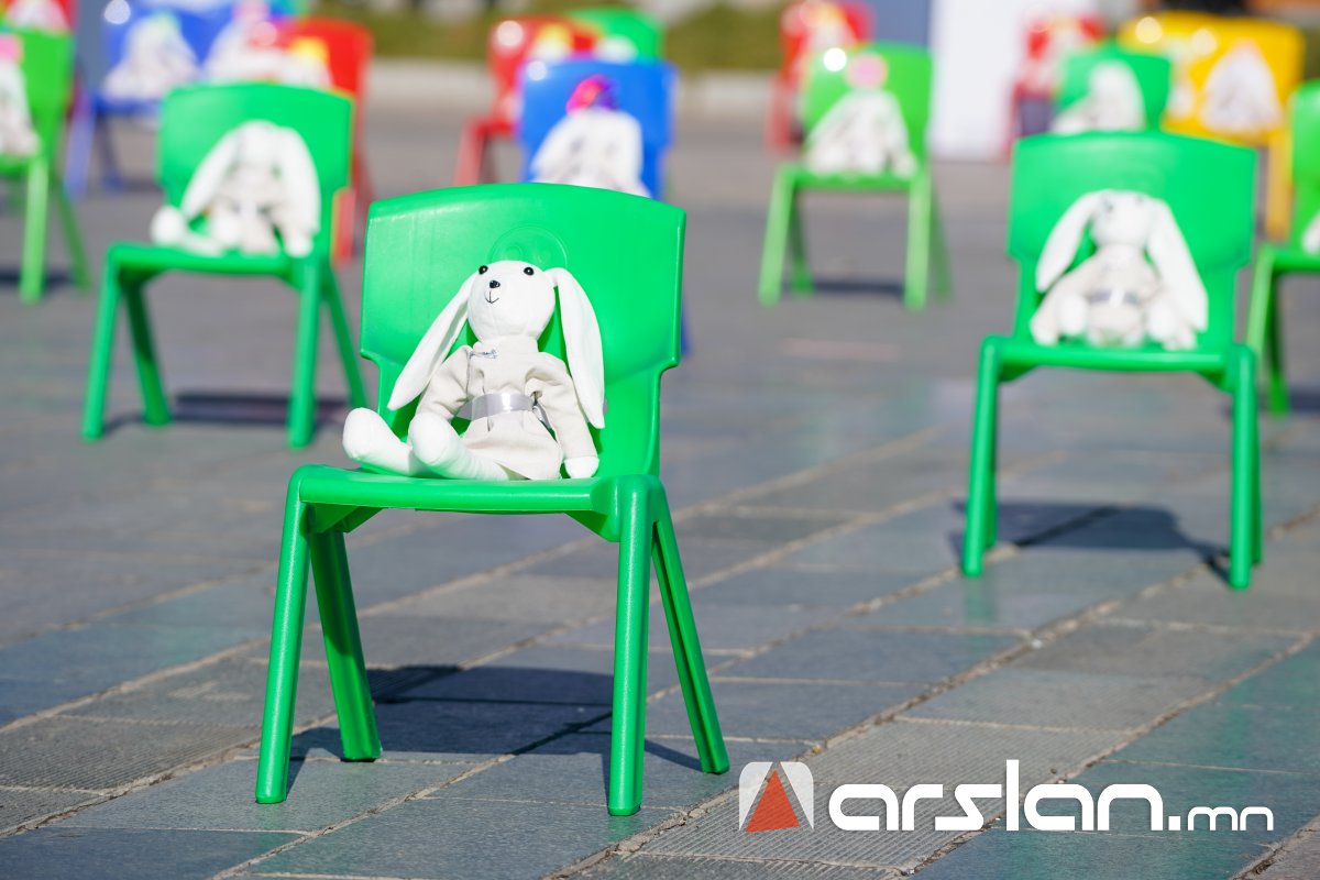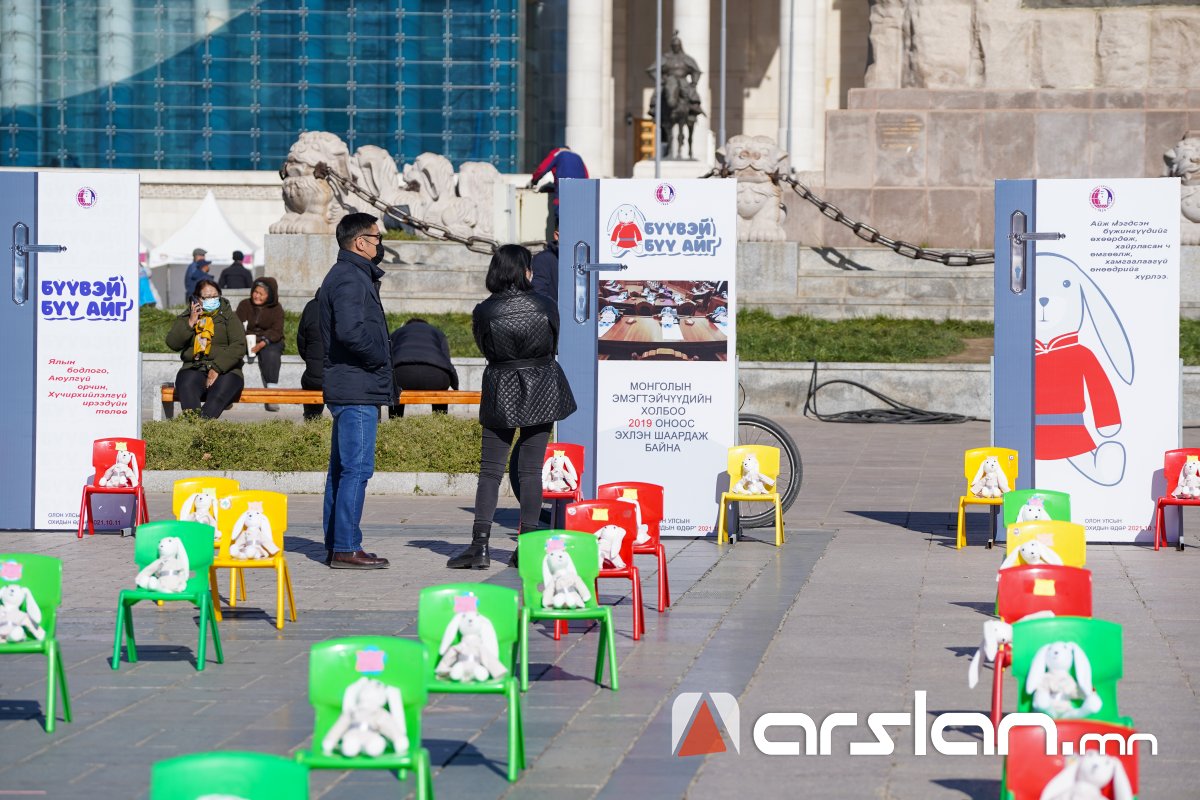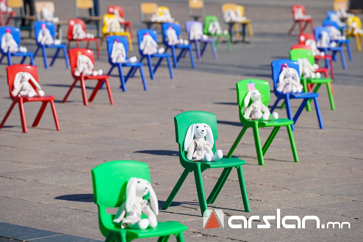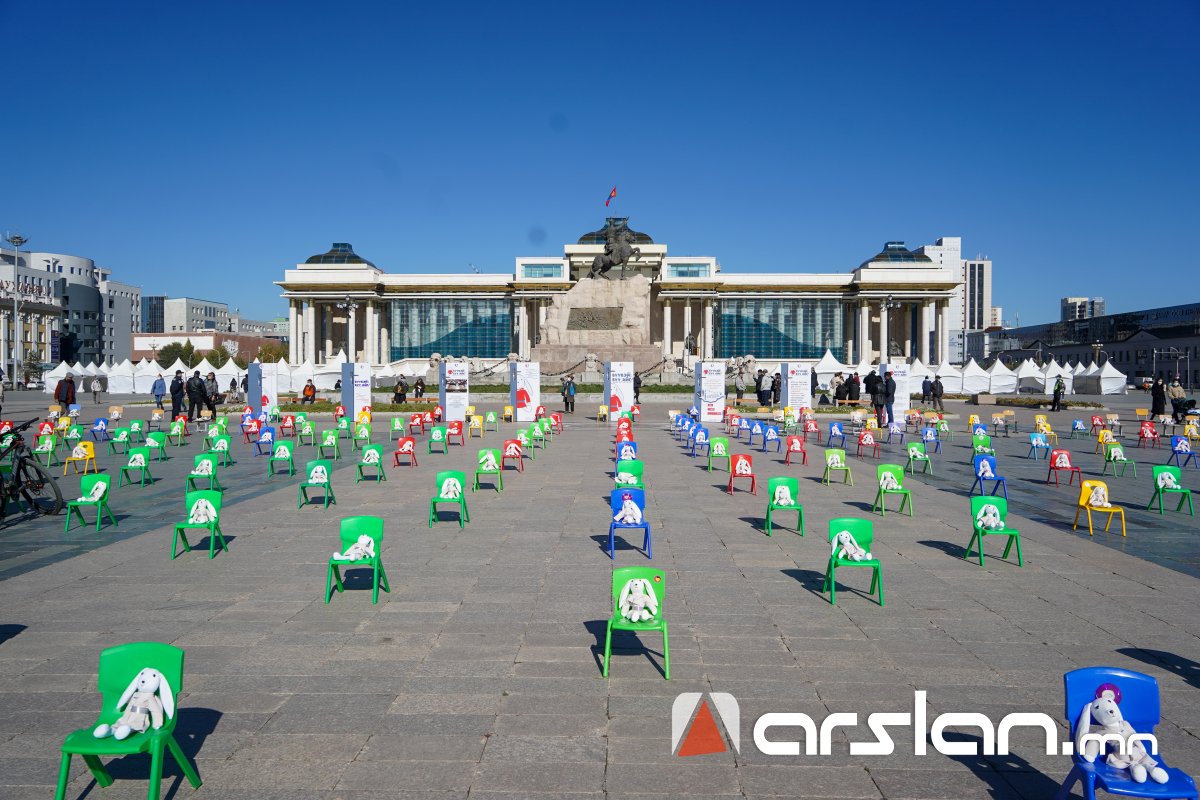 Төв талбайд сандал дээр байрлуулсан 300 туулайг эрүүл мэндийнхээ төлөө ажиллаж буй гурван охинтой аав өөрийн гараар урласан бөгөөд уг суултаар охидын эрхийг хуулиар хамгаалах, хохирсон эрхийг нөхөн төлүүлэх асуудлыг яагаад анхаарахгүй байгааг төрийн ордонд сууж буй эрх баригчдад сануулж байгааг тус холбооноос тодотголоо.
