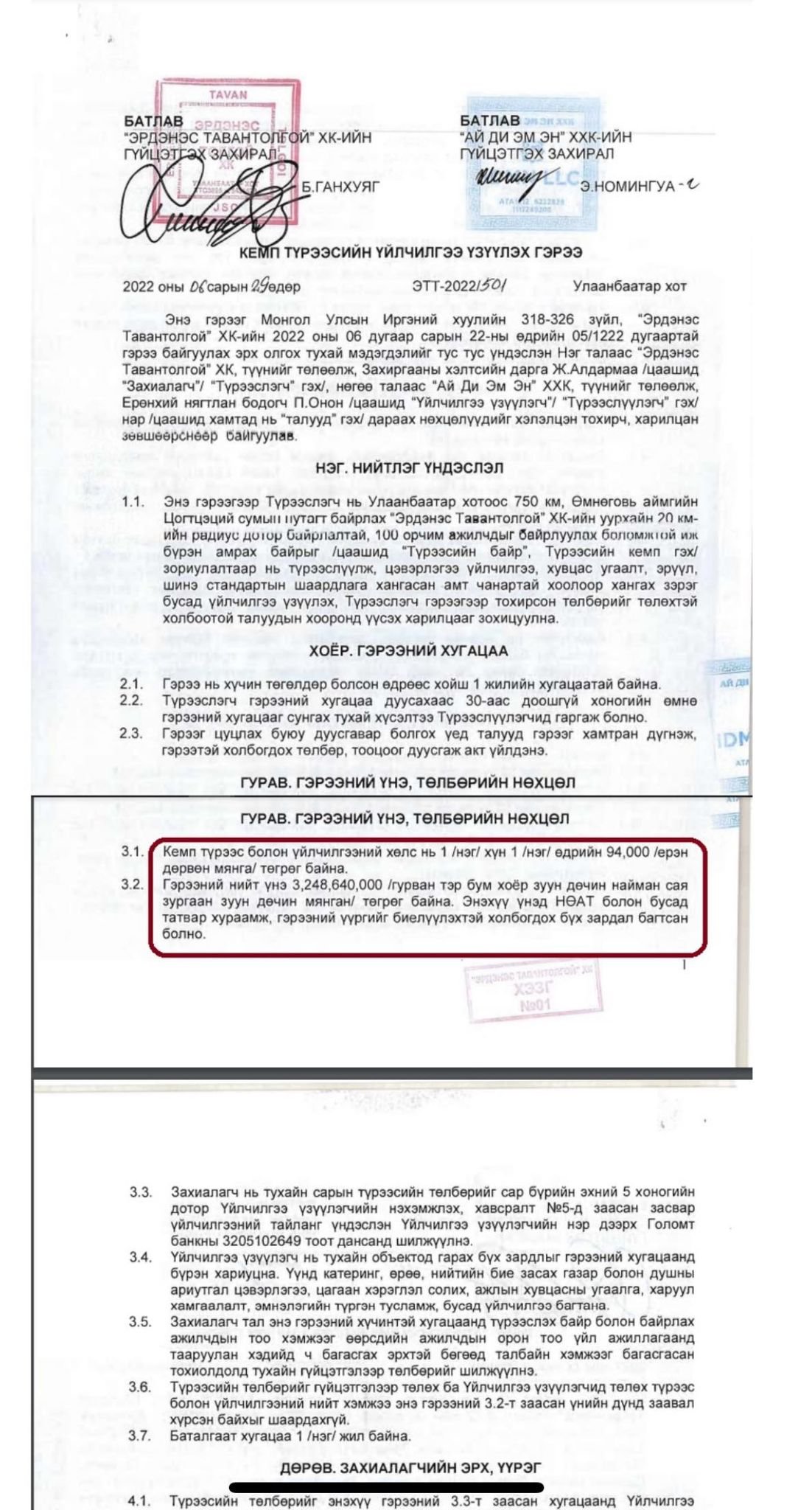 Тус компани энэ оны тавдугаар сард “Эрдэнэс Таван толгой” компаниас зарласан кемп түрээсийн 3 тэрбум 345 сая 795 мянган төгрөгийн тендерт оролцон ялалт байгуулсан байдаг.