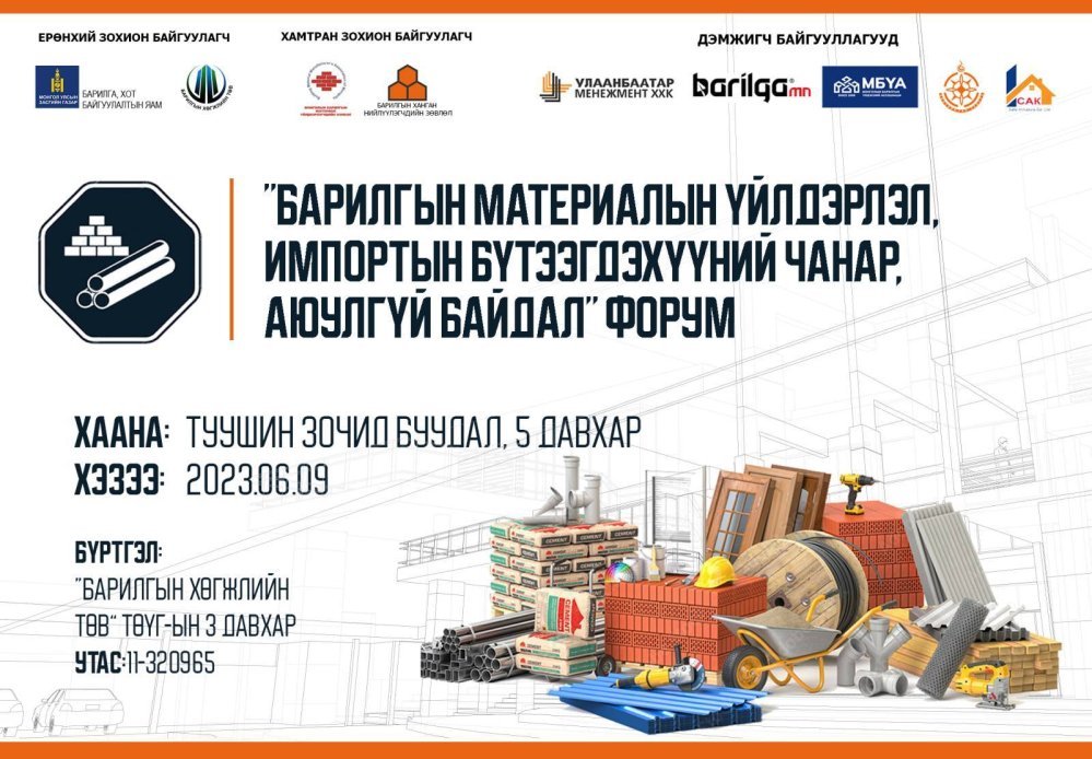 “Барилгын материалын үйлдвэрлэл, импортын бүтээгдэхүүний чанар, аюулгүй байдал“ форум болно