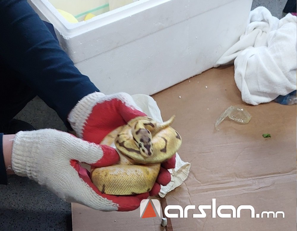 2024 оны 12 дугаар сард улс хоорондын шуудан илгээмжээр БНСУ-аас илгээгдсэн “сувинер, хувцас, шинэ жилийн тоглоом, чимэглэл” гэж мэдүүлсэн илгээмжээс гаалийн хяналт шалгалтаар 9 яст мэлхий, 2 могой илрүүлсэн.
