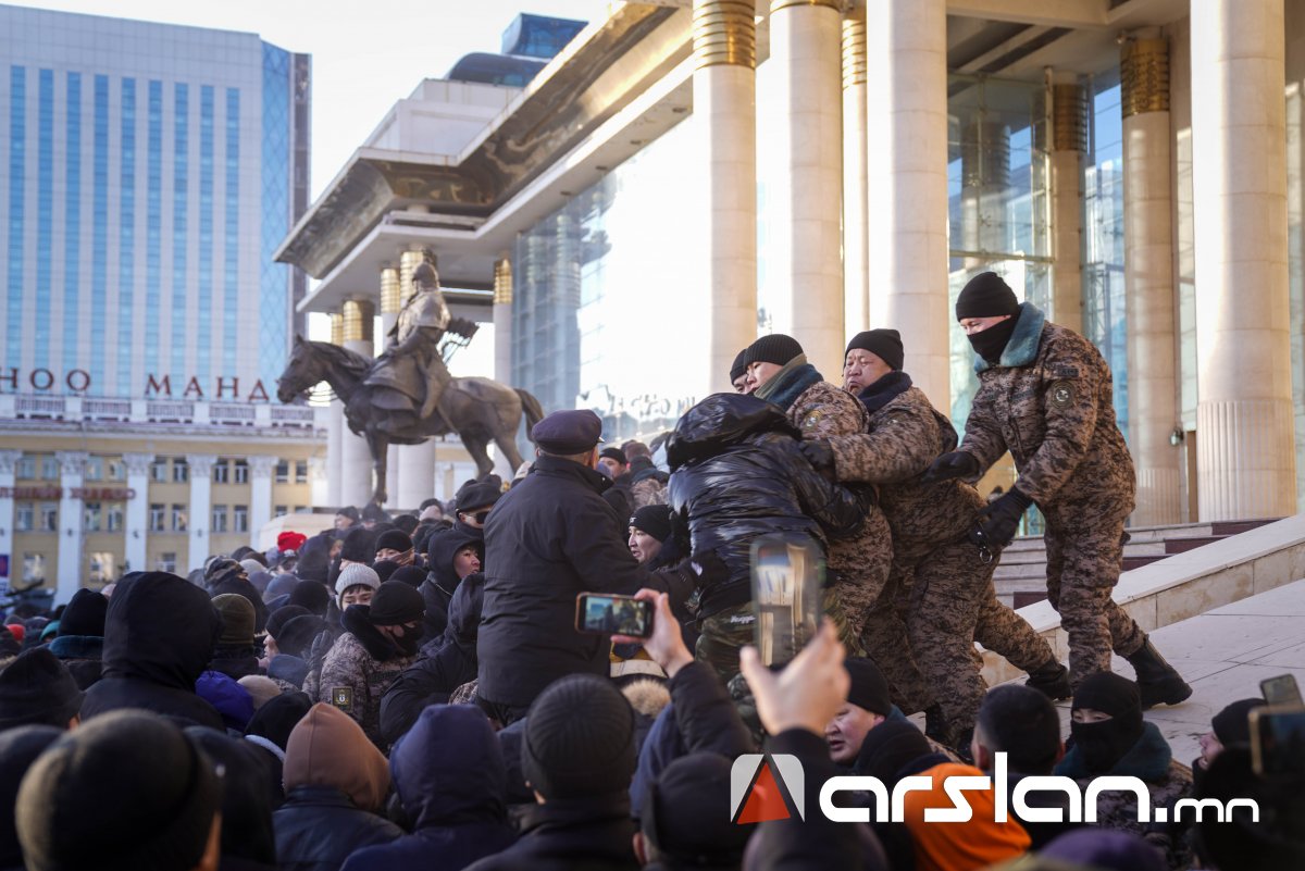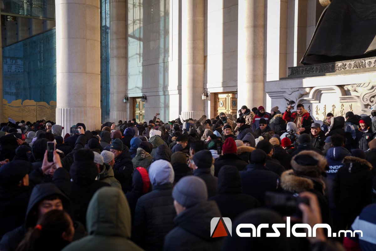 ФОТО: Зохион байгуулалттай зарим бүлэг хүмүүс эмх замбараагүй байдалд үүсгэж, Төрийн ордон руу дайрав
