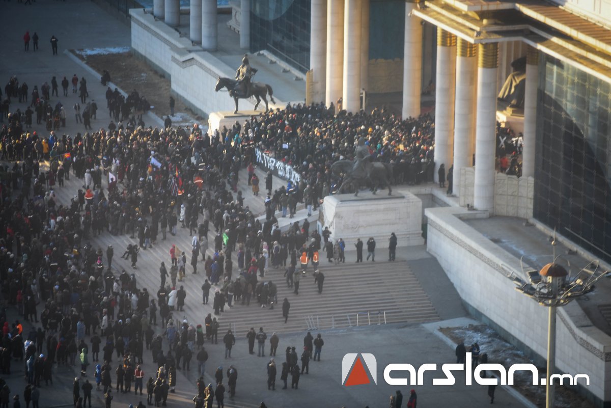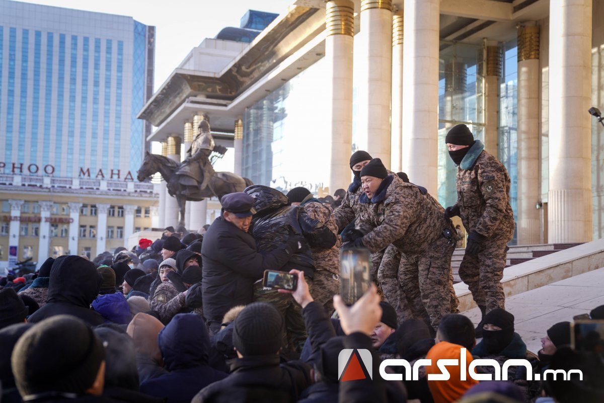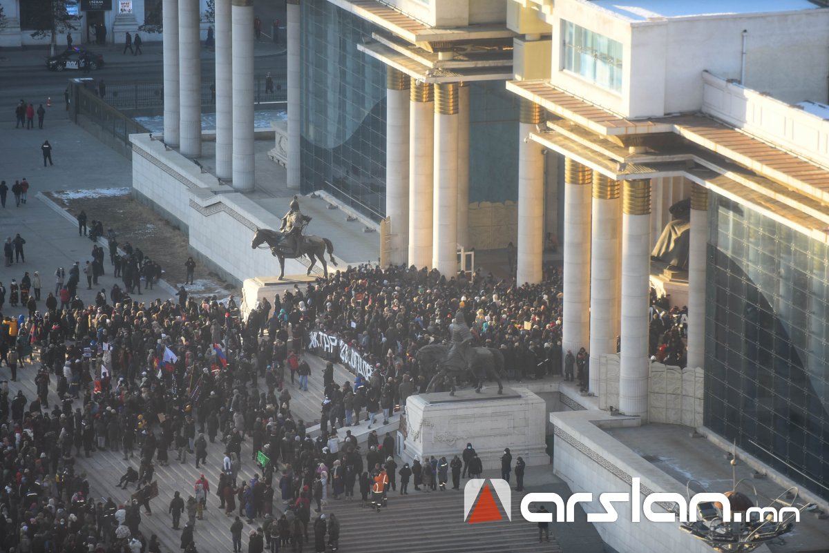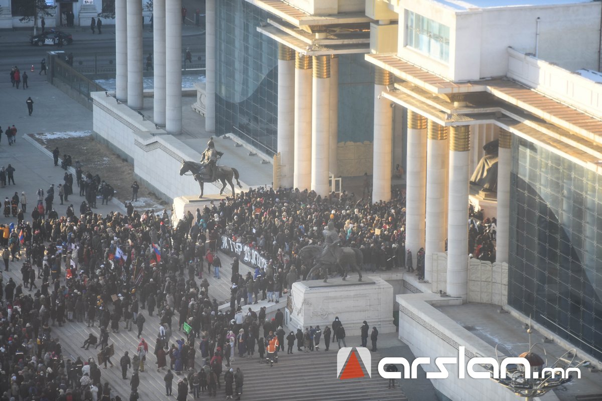 Улаанбаатар хотын агаарын бохирдол, татвар, цахилгаан, дулааны үнийн нэмэгдлийг эсэргүүцсэн иргэд жагсаж буй. Гэтэл зарим зохион байгуулалттай хүмүүс иргэдийн тайван жагсаал өөдөн турхирч, Төрийн ордонд орохоор дайрсан явдал гарлаа.