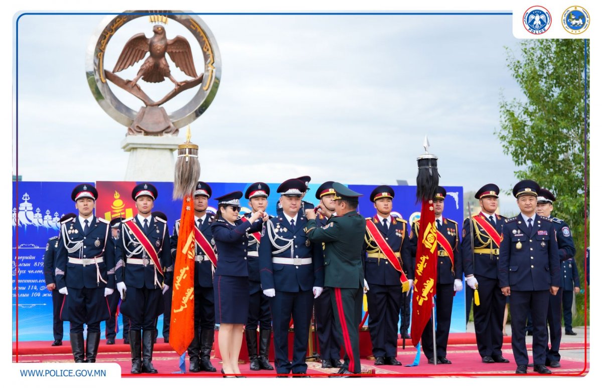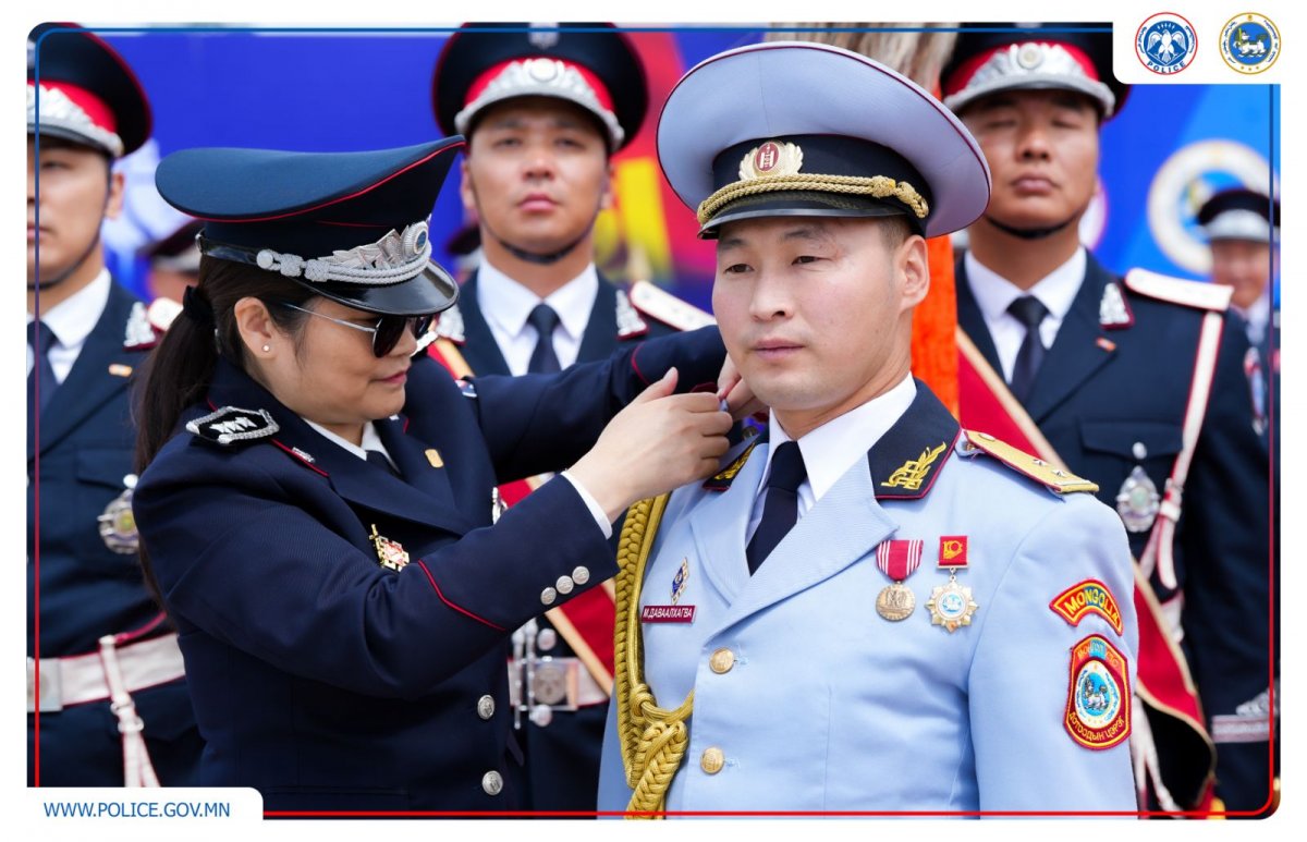 Үндэсний их баяр наадам, Ардын хувьсгалын 104 жилийн ойг тохиолдуулан гэмт хэрэгтэй тэмцэх, урьдчилан сэргийлэх, нийтийн хэв журам хамгаалах, олон нийтийн аюулгүй байдлыг хангах ажилд идэвх зүтгэл, үр бүтээл гарган ажиллаж буй алба хаагчдад Хууль зүй, дотоод хэргийн яам болон Цагдаагийн ерөнхий газрын шагналаар шагнах, цол олгох ёслолын ажиллагаа өнөөдөр /2025.07.07/ Үндэсний цэцэрлэгт хүрээлэнгийн “Цагдаа цогцолбор”-ын талбайд боллоо.