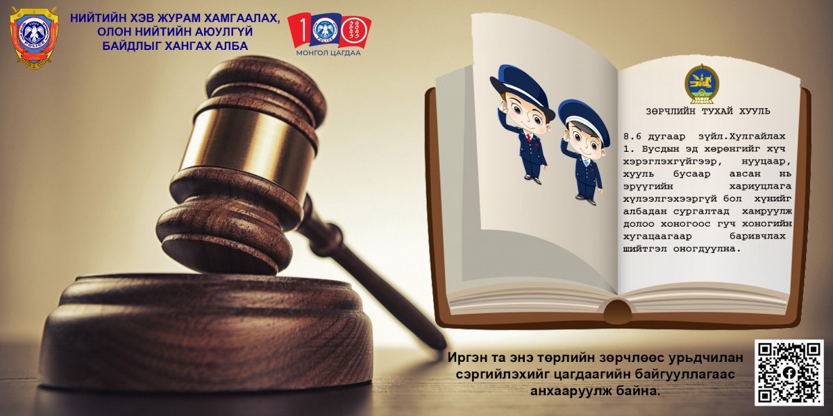 Зөрчлийн талаарх гомдол мэдээлэл 593 /нийслэлд 507, орон нутагт 86/, Гэр бүлийн хүчирхийллийн гомдол мэдээлэл 110 /нийслэлд 100, орон нутагт 10/, улсын хэмжээнд эрүүлжүүлэгдсэн 151 хүн байна.